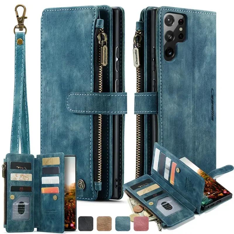 CaseMe Flip Leren Telefoonhoesje Voor Samsung Galaxy S25 Ultra S25 Edge S24 FE S23 S22 S21 S20 Plus S10 Note 20 Ultra Rits Portemonnee Kaarthouder Tas