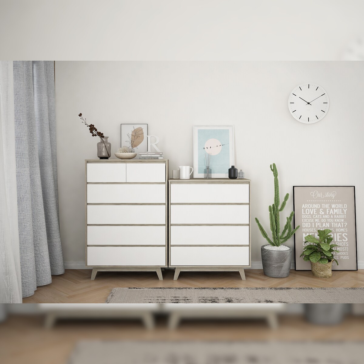 Möbilia Kommode | 6 Schubladen | Spanplatte laminiert natur | Schubladen weiß | B 80 x T 40 x H 118 cm | 27020003 | Serie KOMMODE