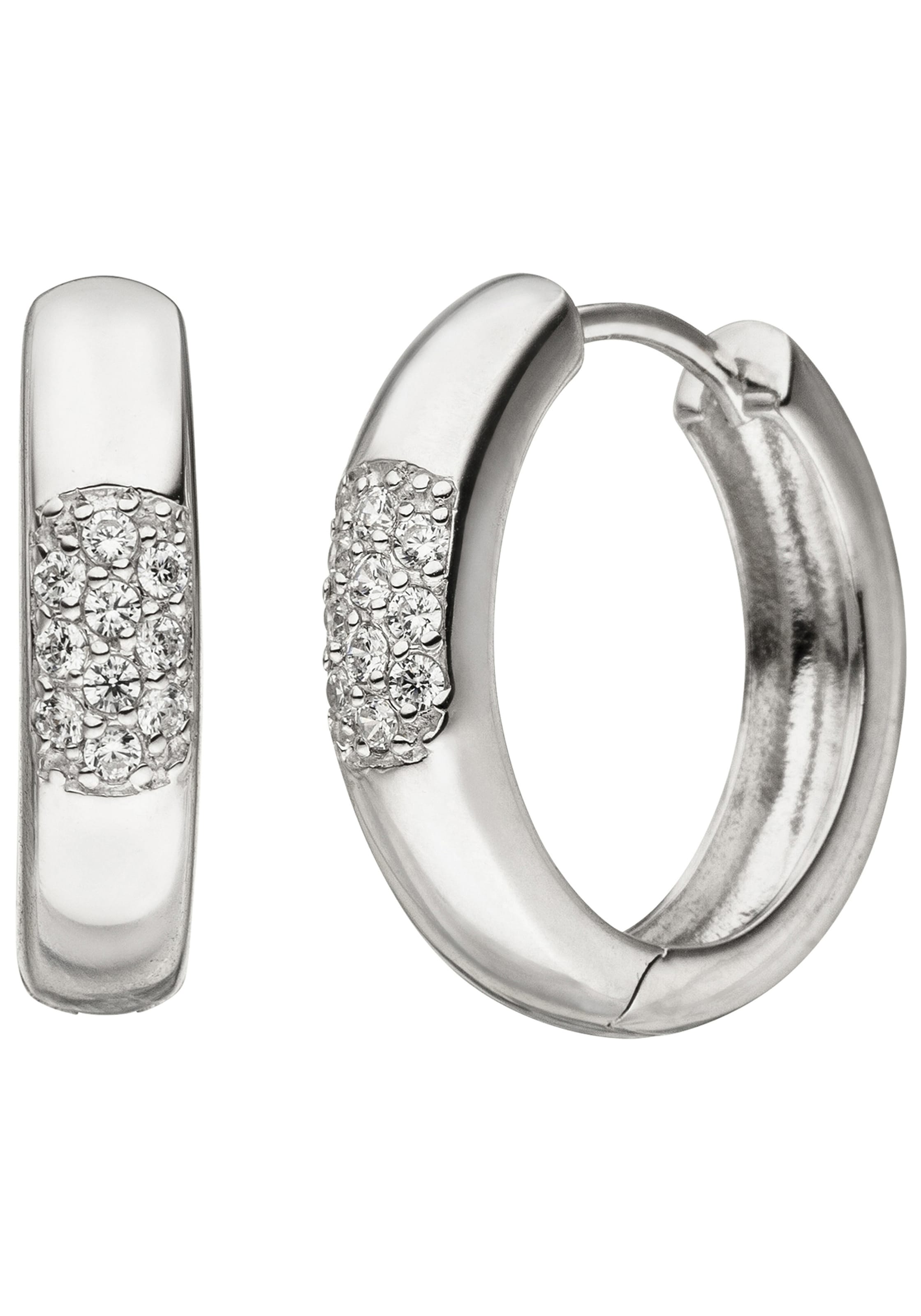 Paar Creolen JOBO, silber (silber 925), Ohrringe, Damen, Silber 925 (Sterlingsilber), 925 Silber mit 20 Zirkonia