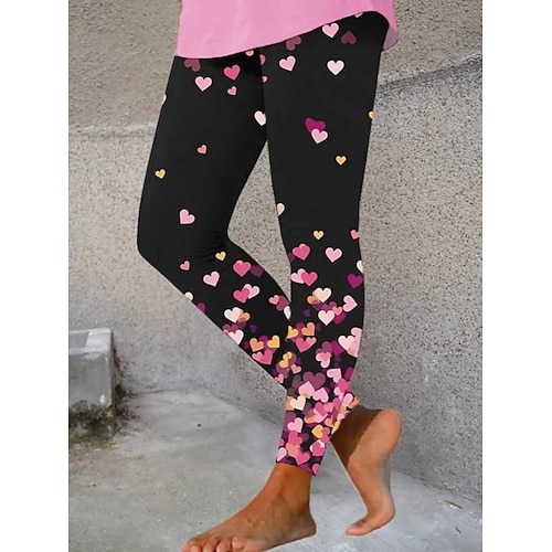 Leggings da donna per San Valentino, stile etnico vintage, pantaloni lunghi a vita alta, grafica a cuore, morbidi, comodi, elastici, per tutti i giorni, per casa, all'aperto, neri, bianchi, estate,