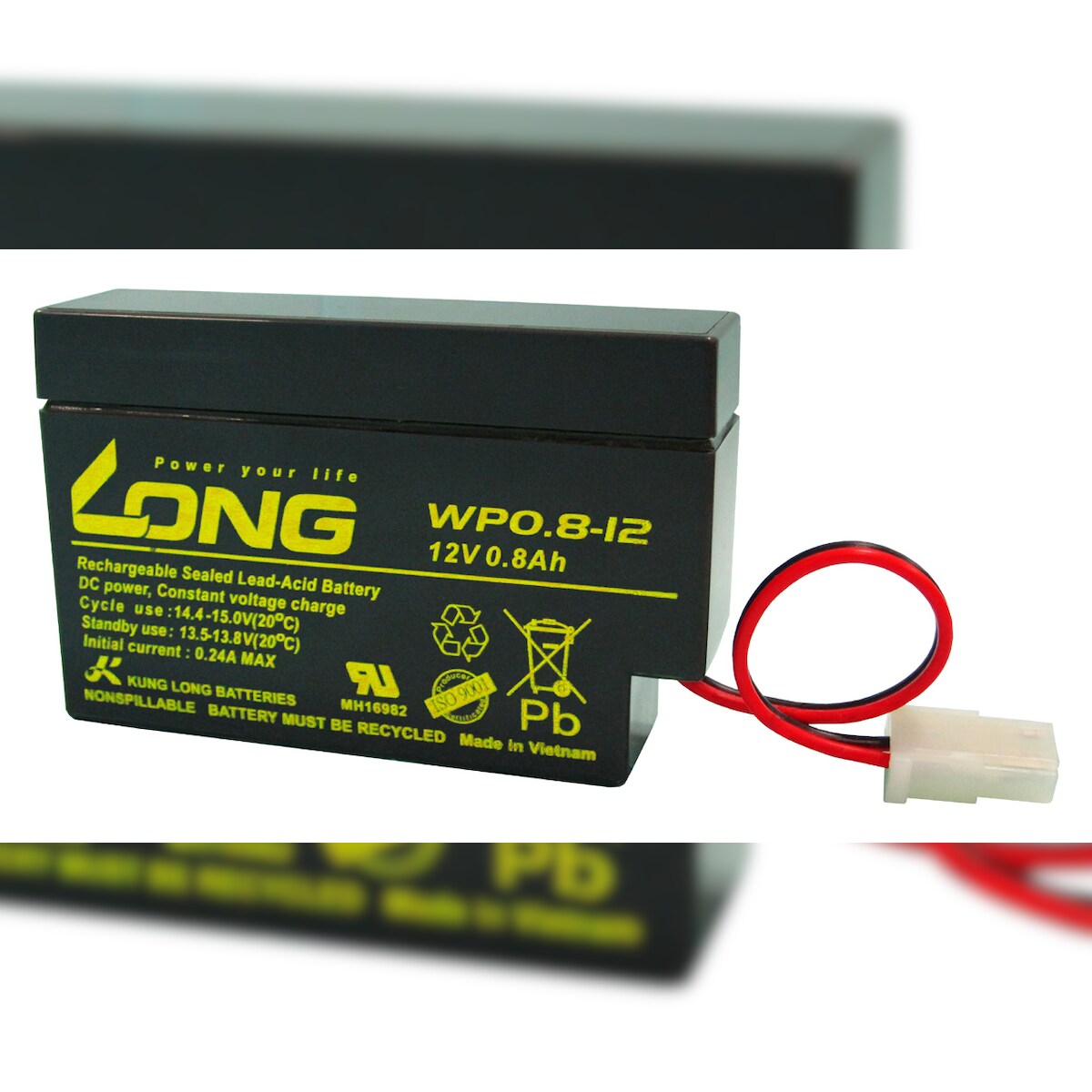 Kung Long WP0.8-12 Blei-Vlies-Akku, 12Volt, 0,8Ah mit AMP Stecker