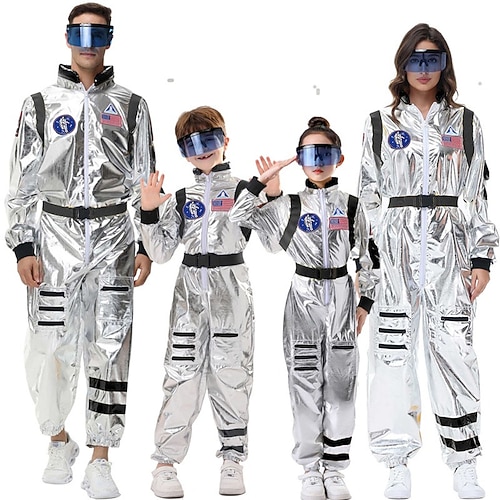 coppia costume astronauta tuta costume carnevale tutina con maschera costumi di gruppo tuta spaziale argentata per uomo donna con toppe ricamate
