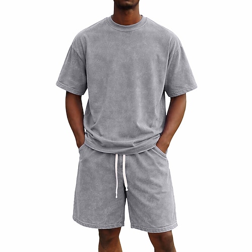 Per uomo Tuta Set pantaloncini e T-shirt Set tinta unita in cotone casual Manica Corta Girocollo Estate Tinta unica Ginnastica Casual 2 Pezzi Vintage ▾ Casuale Vacanza Abbigliamento quotidiano