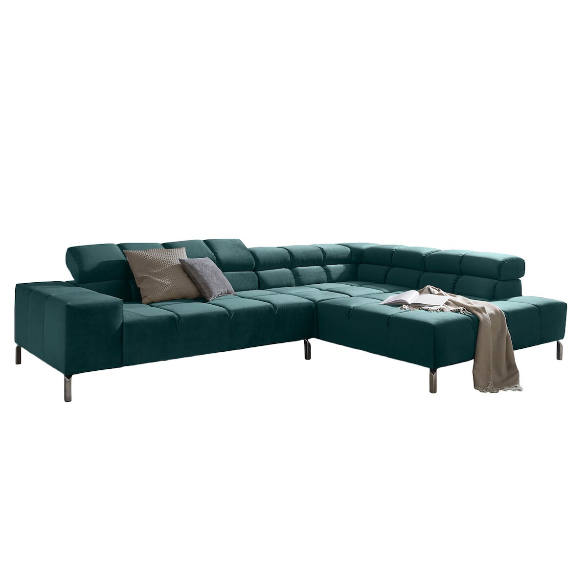 KAWOLA Sofa NELSON Ecksofa Velvet smaragd Recamiere rechts