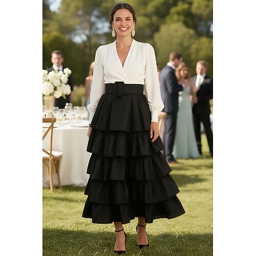 Linea ad A Lunghezza alla caviglia Vestito da Festa Abito da Cocktail Abito da invitata a nozze Abito da cerimonia per signora Manica Lunga Scollo a V Elegante Ospite di nozze Ricevimento di