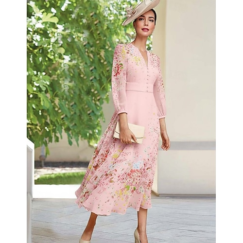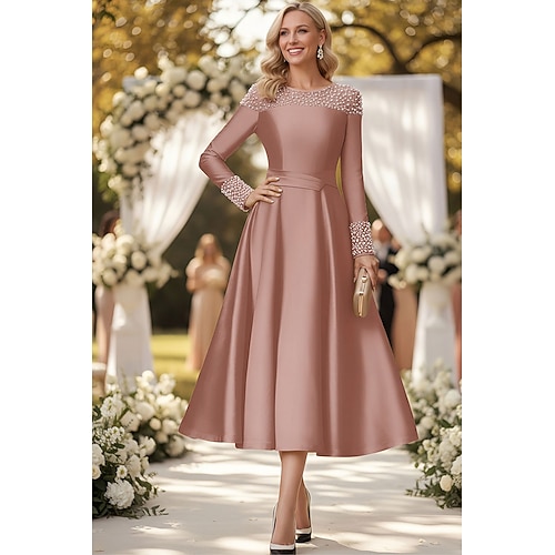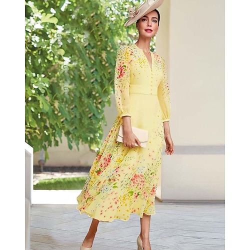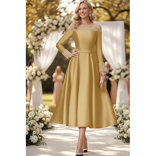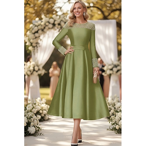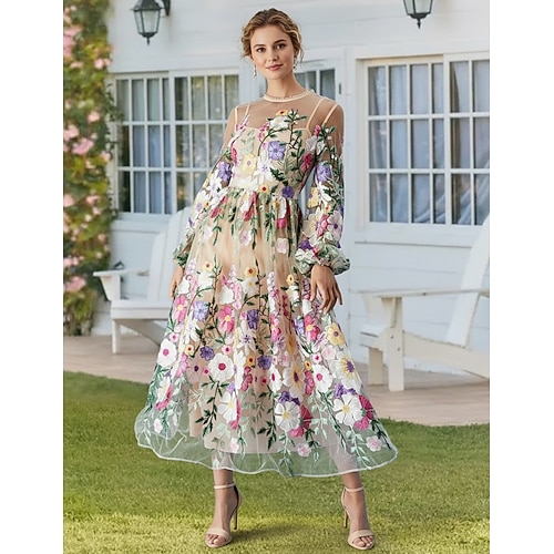 Linea ad A Abito Lunghezza alla caviglia Lunghezza Tè Vestito da Festa Abito da Cocktail Abito da invitata a nozze Abito da cerimonia per signora Manica Lunga Mezza Manica Girocollo Elegante Vintage