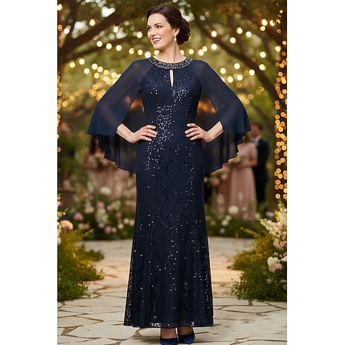 Tubino Colonna Lunghezza al pavimento Vestito da Festa Abito da Cocktail Abito da invitata a nozze Abito da cerimonia per signora Manica Lunga Girocollo Elegante Formale Chiffon Con Paillettes con