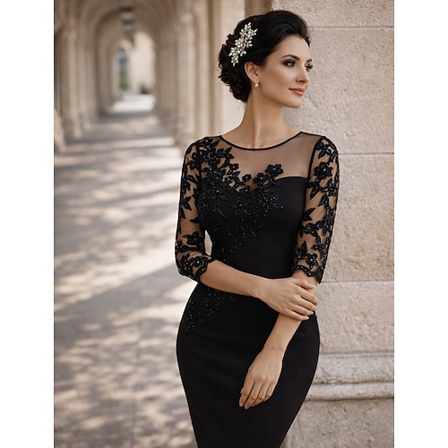 Tubino Colonna Lunghezza al ginocchio Vestito da Festa Abito da Cocktail Abito da invitata a nozze Abito da cerimonia per signora Manica Lunga Mezza Manica Girocollo Elegante Cocktail Derby del