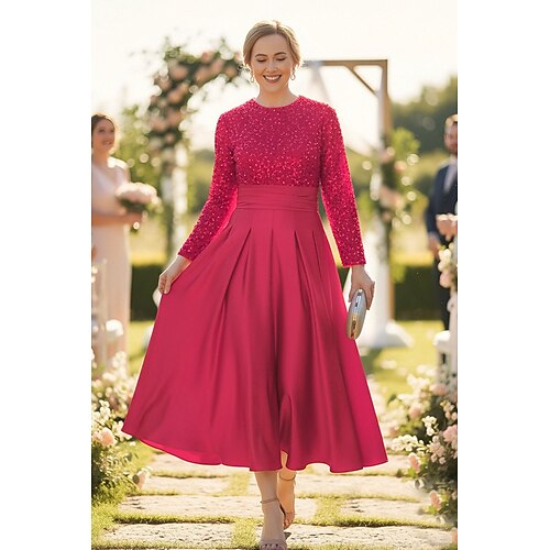Linea ad A Lunghezza alla caviglia Lunghezza Tè Vestito da Festa Abito da Cocktail Abito da invitata a nozze Abito da cerimonia per signora Manica Lunga Girocollo Elegante Brillare Splendere