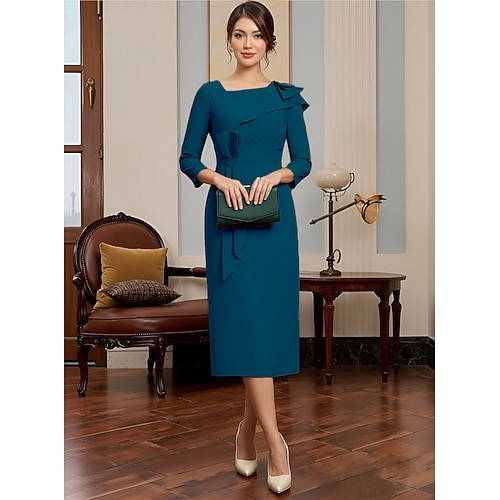 Tubino Colonna Lunghezza Tè Vestito da Festa Abito da Cocktail Abito da invitata a nozze Abito da cerimonia per signora Manica Lunga Collo quadrato Elegante Minimalista Formale Ospite di nozze