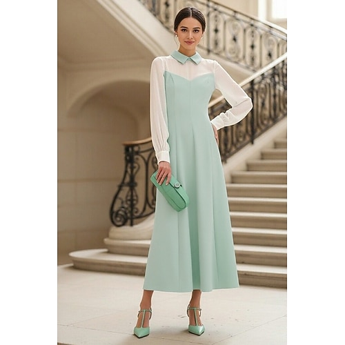 Linea ad A Lunghezza alla caviglia Vestito da Festa Abito da Cocktail Abito da invitata a nozze Abito da cerimonia per signora Manica Lunga Colletto a Camicia Elegante Formale Ospite di nozze Chiffon