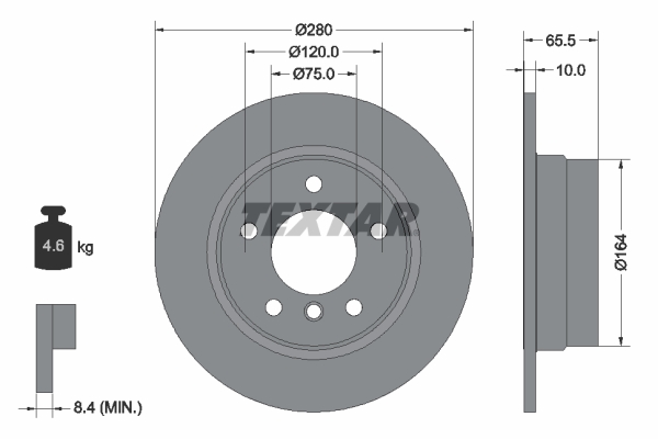 TEXTAR Bremsscheibe PRO 92132903 hinten rechts links voll 280mm für BMW 34216764647 6764647 34216855001