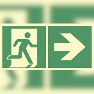 Notausgang rechts Pfeil rechts, Kombi, ISO 7010, Folie,nachl.,160-mcd, 400x200mm