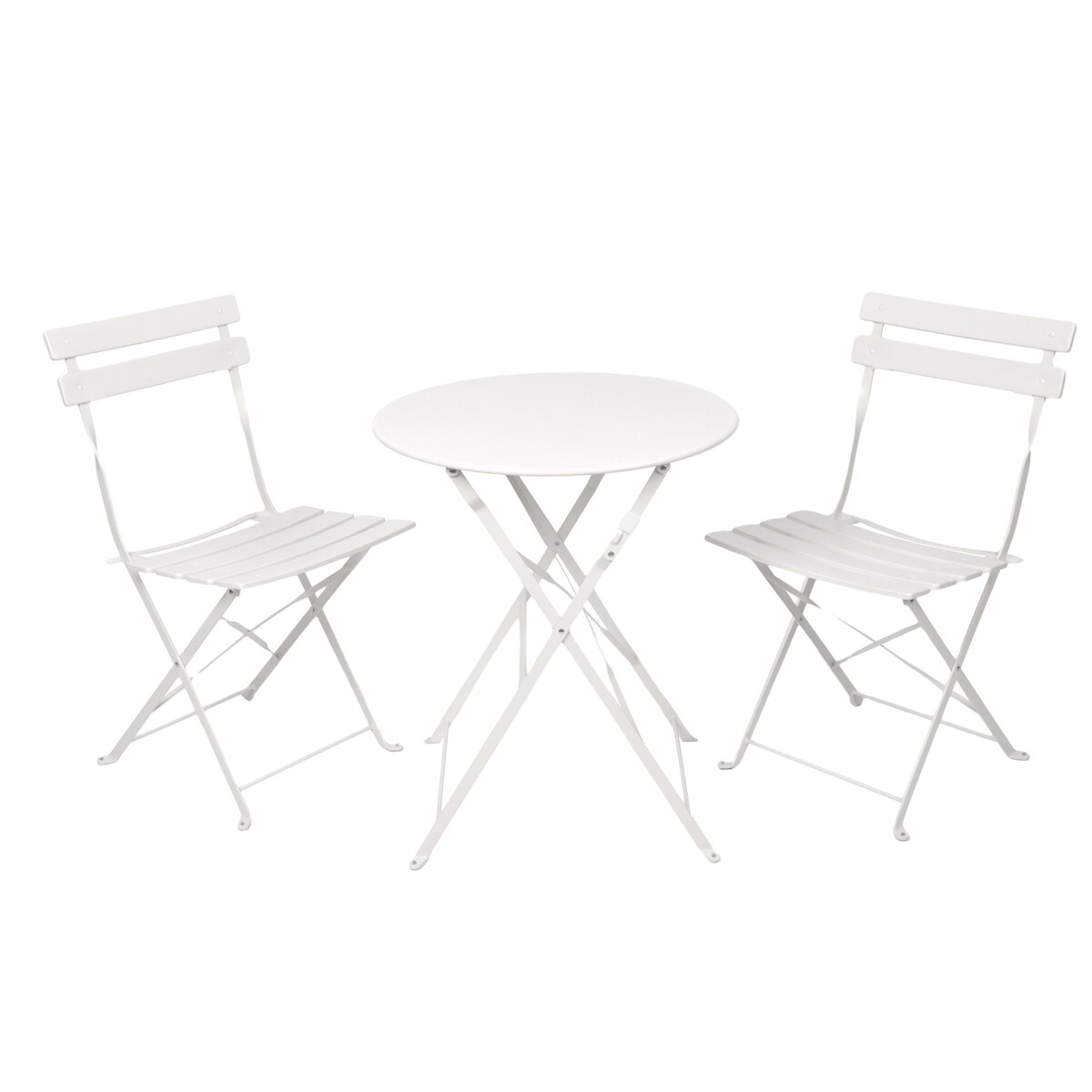Albatros Bistroset 3-teilig Weiß Bistrotisch mit 2 Stühlen klappbare Stühle und Tisch aus robustem Metall optimal als Balkonmöbel Set oder Gartenmöbel