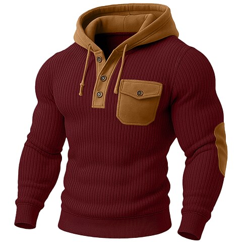 Per uomo Felpa con cappuccio Felpa con cappuccio abbottonata Maglia a coste Rosso bordeaux Verde militare Blu marino Cachi Con Cappuccio Semplice Patchwork Blocco di colore Testurizzato Casuale