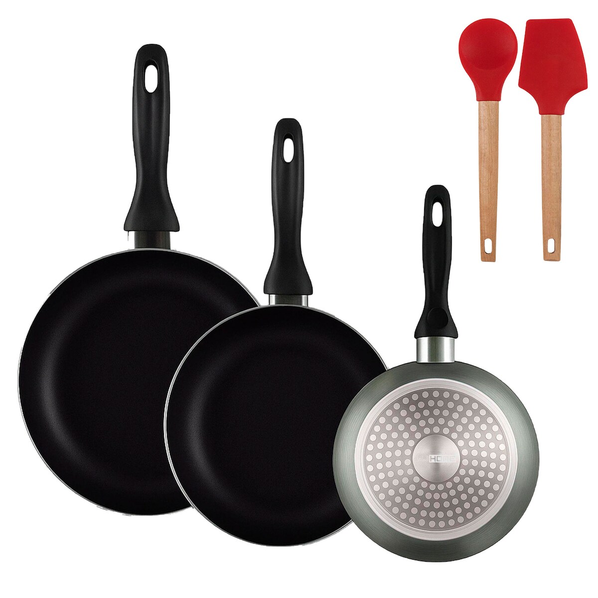 BERGNER - Set aus 3 Pfannen Ø16/20/24cm aus gepresstem Aluminium in metallic-grau mit 2-teiliges Küchenutensilien-Set EXCALIBUR