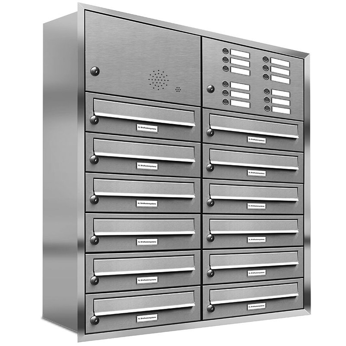 AL Briefkastensysteme 12 Fächer Premium Edelstahl Unterputz Briefkasten Anlage für Post A4, modern, robust, wetterfest, Artikelnummer: 132T12U2KS