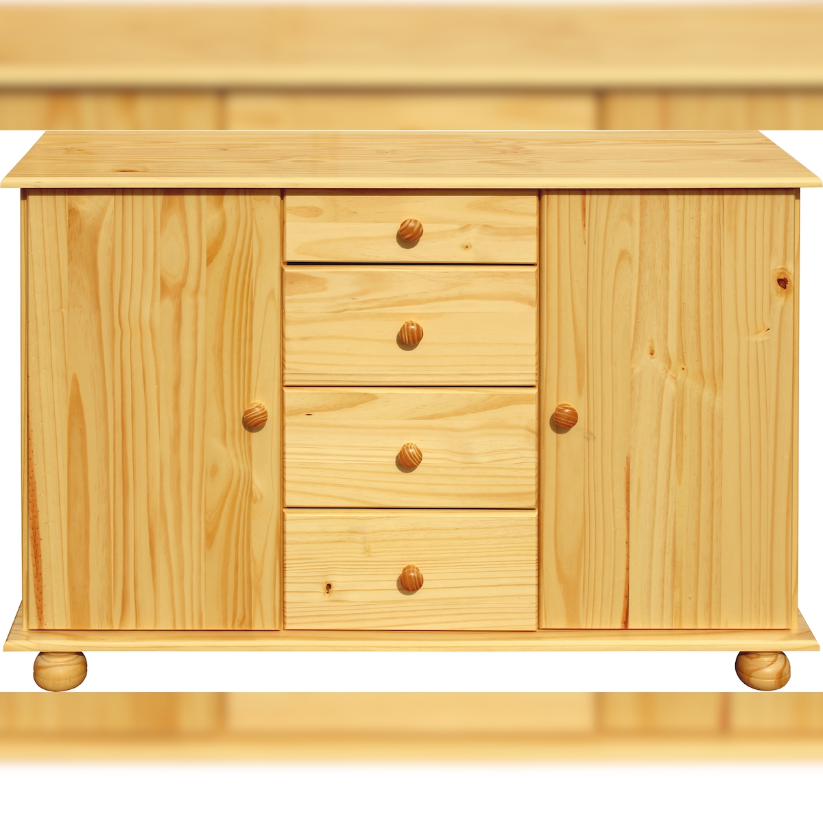 SIT Möbel Kommode | 4 Schubladen | 2 Türen | Kiefer-Holz massiv | B 119 x T 38 x H 81 cm | natur | 19000-65 | Serie KOMMODE