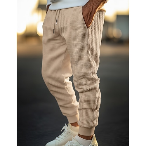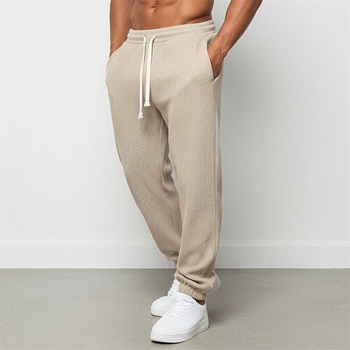 Per uomo Nido d'ape Pantaloni da tuta Joggers Pantaloni Pantaloni casual Coulisse Polsino elastico Tinta unica Comodità Lunghezza intera Quotidiano All'aperto Abbigliamento casual alla moda Vacanza