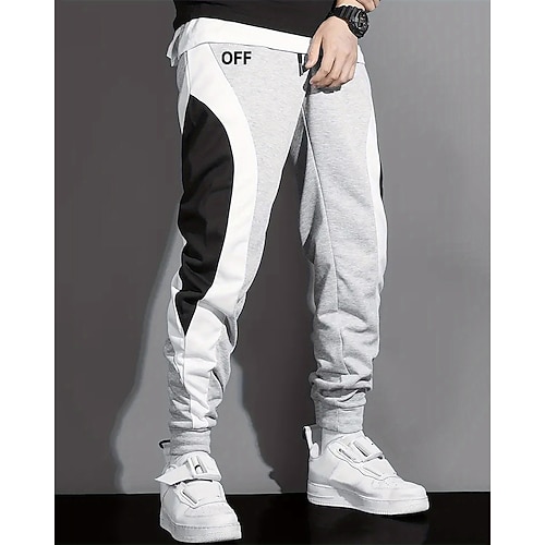Per uomo Pantaloni da tuta Joggers Pantaloni Coulisse Tasca Elastico in vita Blocco di colori Lettera Comodità Sport all'Aperto Quotidiano Moda Casual Nero Grigio Micro-elastico