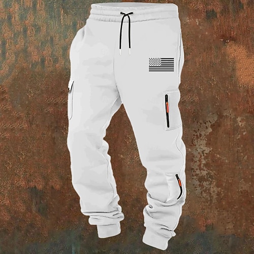 Per uomo Pantaloni Cargo Pantaloni da tuta Joggers Pantaloni Coulisse Tasca Elastico in vita Bandiera Americana Comodità Traspirante Casuale Quotidiano All'aperto Moda Stile Classico Nero Bianco