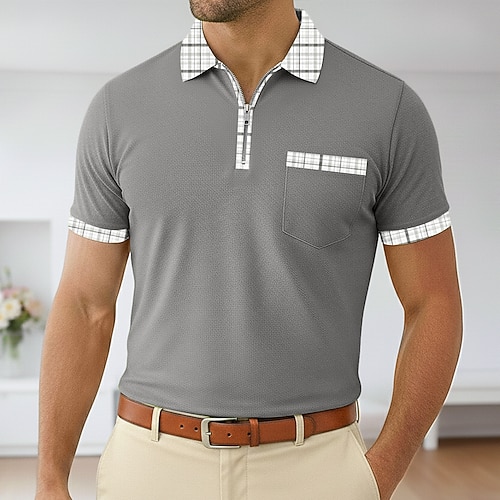 Per uomo Maglia da golf Casuale Affari Classico Manica Corta Moda Essenziale Tinta unica Plaid Bottoni Estate Primavera Primavera Autunno Vestibilità regolare Blu marino Verde militare Grigio