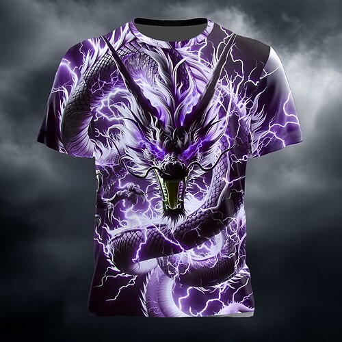 Per uomo Drago 3D Maglietta Manica Corta maglietta Stampa 3D Girocollo Camicia Esagerato Designer Feste Streetwear Casuale Blu Viola Verde Estate Primavera Abbigliamento S M L XL XXL XXXL