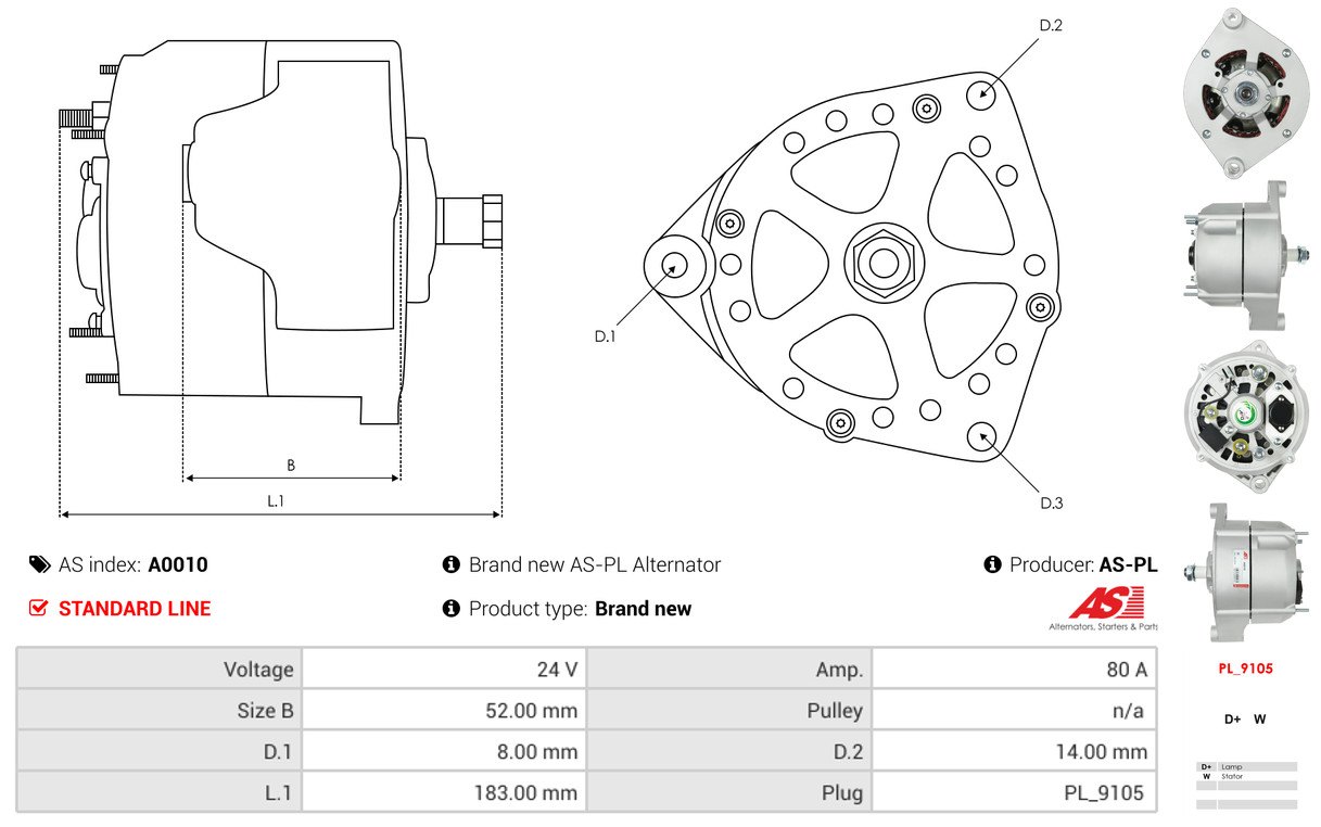 AS-PL Generator A0010 Universal 24V 80A für RENAULT DAF VOLVO 1516636R 85000716 85000480