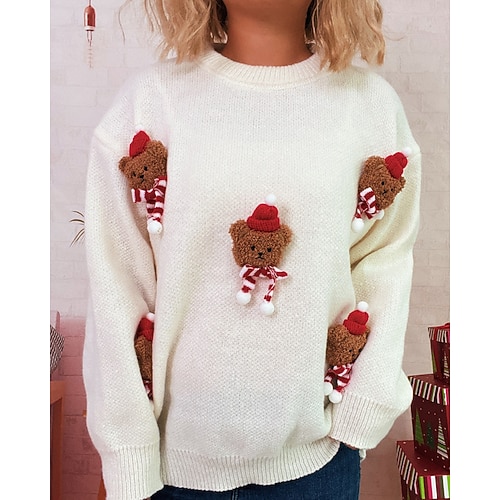 Per donna Felpa Maglione Pom Pom regalo di Natale Carino Animale A Coste Girocollo Lavorato a maglia Manica Lunga Top Regolari Maglia Natale All'aperto Uscire Bianco Rosso Autunno Inverno