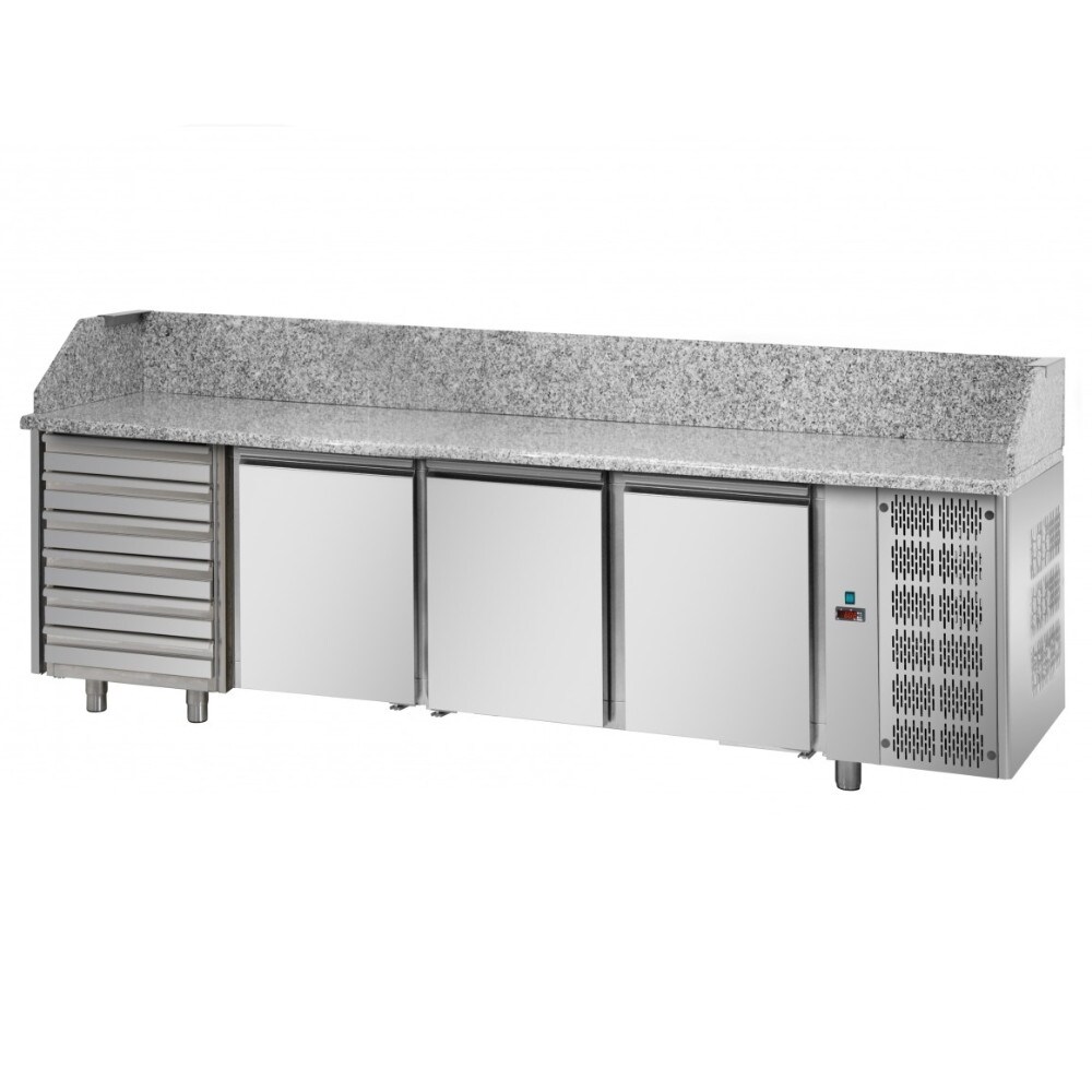 Tecnodom Pizzatheke 4 Türen GN 1/1 6 neutrale Schubladen und Granitplatte