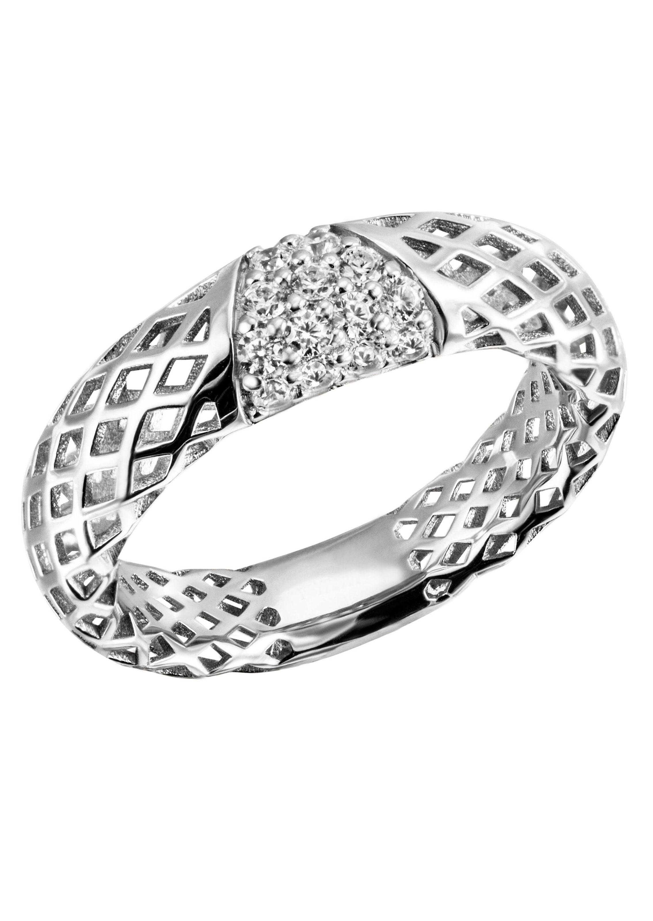 Fingerring LADY Gr. 19, silber (silber 925), Fingerringe, Damen, 19, Glas Silber 925 (Sterlingsilber), Glas, Silber 925 (Sterlingsilber), Fingerring
