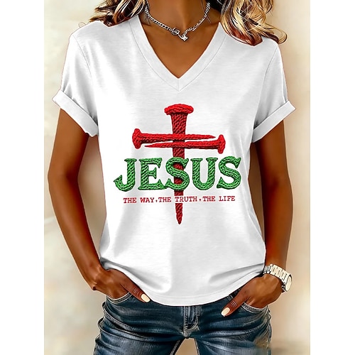 Per donna Maglietta Grafico Lettera Vintage Elegante Casual Manica Corta Scollo a V Top Regolari Quotidiano Stampato Nero Bianco Rosso Autunno Inverno