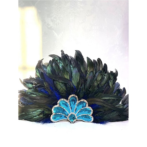 Carnevale 2026 Accessori per Samba di Rio Copricapo di piume marrone arancione per donne - Copricapo da showgirl con paillettes dorate - Accessorio per Mardi Gras Carnevale in Brasile
