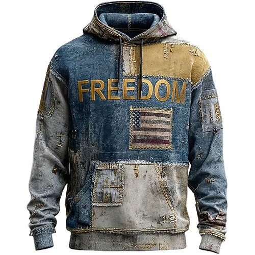 Per uomo Bandiera Americana FREEDOM Felpa con Cappuccio Moda Stile da Strada Vintage Retrò Manica Lunga Con Cappuccio Vacanza Feste Abbigliamento casual alla moda Festival Nero Stampa Autunno Inverno