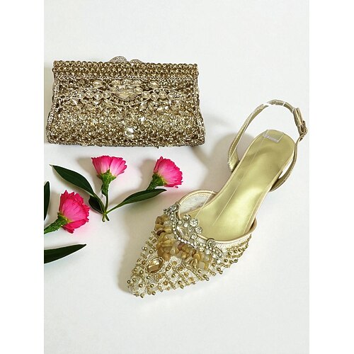 set di scarpe con tacco e pochette da donna in strass verdi - eleganti décolleté con cinturino posteriore e borsa per cocktail party e occasioni formali