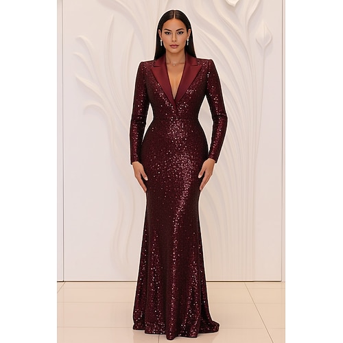 Per donna Da donna Abito da smoking Linea ad A Formale Raso Strass Elegante Vintage Manica Lunga Lunghezza al pavimento Dentellato Risvolto a punta Doppiopetto