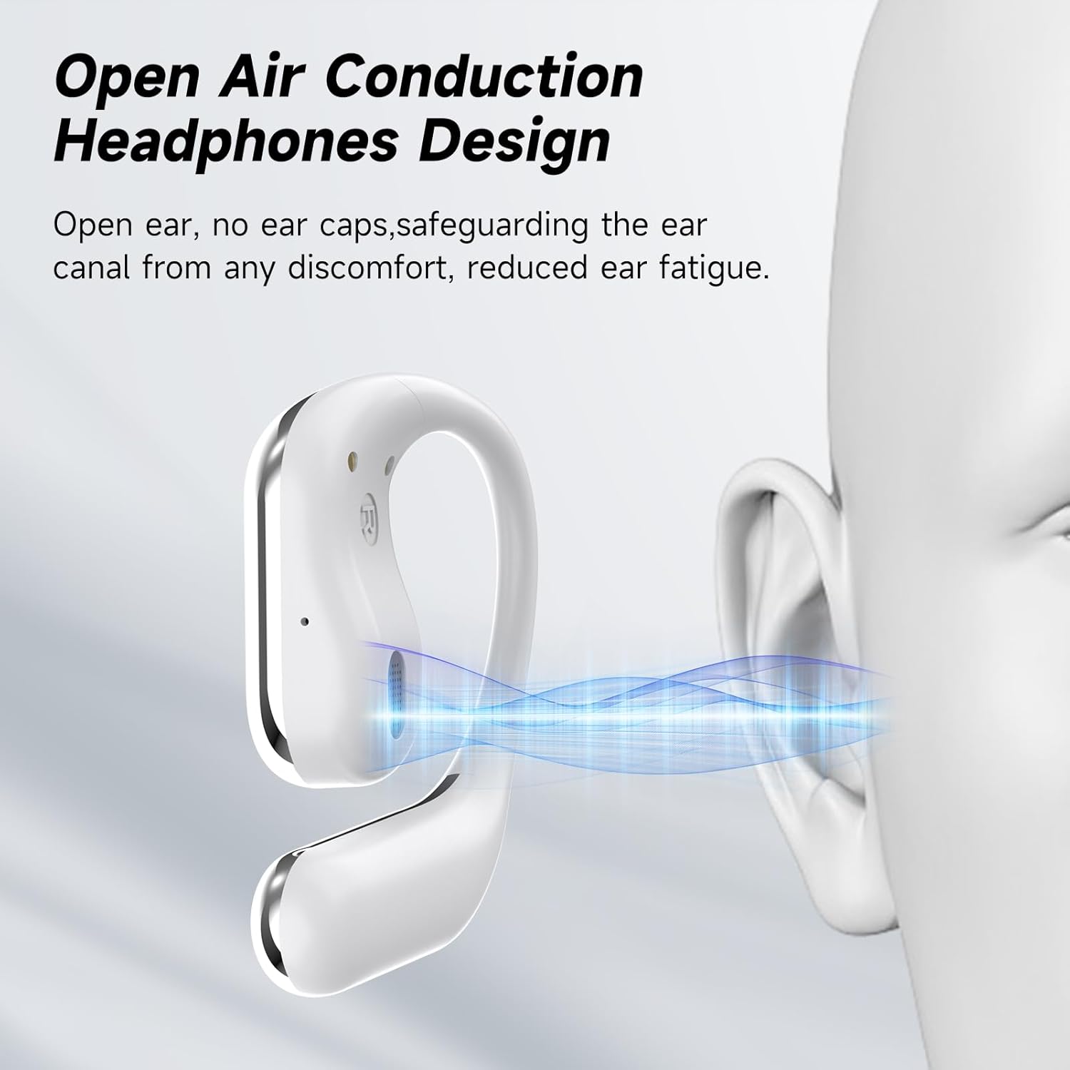EUQQ Open Ear Bluetooth 5.4 Headphones, Wireless Earbuds Sport Over Earphones Built-in Mic with Ear Hooks 50H Playtime Ear Buds LED Display Charging