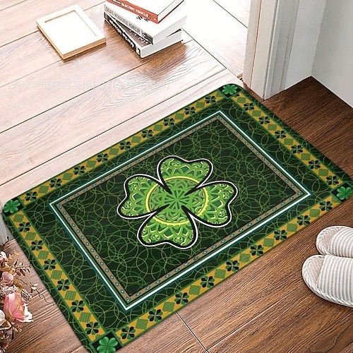 zerbino per la festa di San Patrizio, motivo irlandese a quadrifoglio, zerbino per l'ingresso, tappeto per la festa di San Patrizio con trifoglio verde.