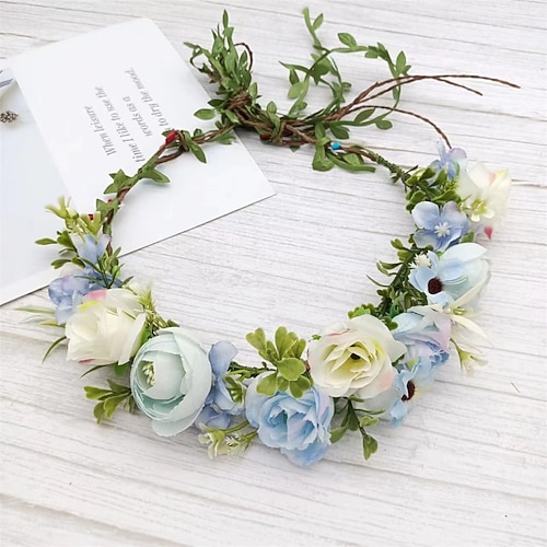 Accessori per capelli bohémien, fascia per capelli con fiori da matrimonio in stile bosco, corona floreale verde, accessorio per foto