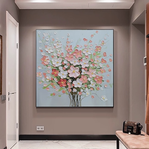 Dipinto a olio fatto a mano su tela, decorazione da parete, moderno dipinto astratto con coltello, fiori per soggiorno, arredamento per la casa, dipinto appeso su telaio teso/dipinto arrotolato senza