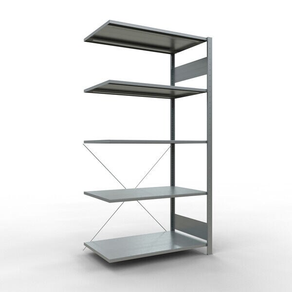 SCHULTE Lagertechnik Anbauregal, Eckregal (Feld C) 2000 x 1000 x 600, 5 Fachböden, Kreuzstrebe, verzinkt