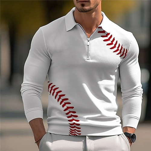 Per uomo Geometrico Polo Manica Lunga Collo ripiegato Moderno Tempo libero Sport Outdoor Athleisure Casual Quotidiano Cerniera Stampa 3D Primavera Autunno Inverno Bianco Blu Verde