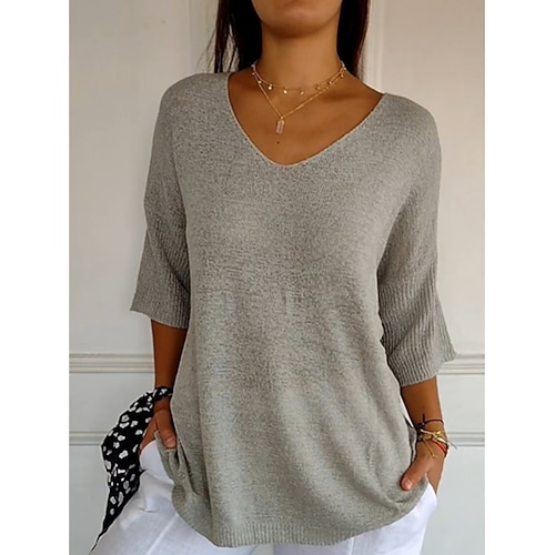 Per donna Felpa Maglione Quotidiano Elegante Casual Tinta unica A Coste Scollo a V Lavorato a maglia Manica 3/4 Top Regolari Maglia All'aperto Quotidiano Nero Bianco Estate Primavera