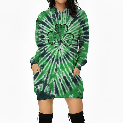 San Patrizio 2026 Trifoglio Irlandese fortunato Carnevale Felpa con cappuccio Innovativo Divertente Adulti Per donna Giorno di San Patrizio Casuale Feste Costume di Carnevale facile Vestirsi