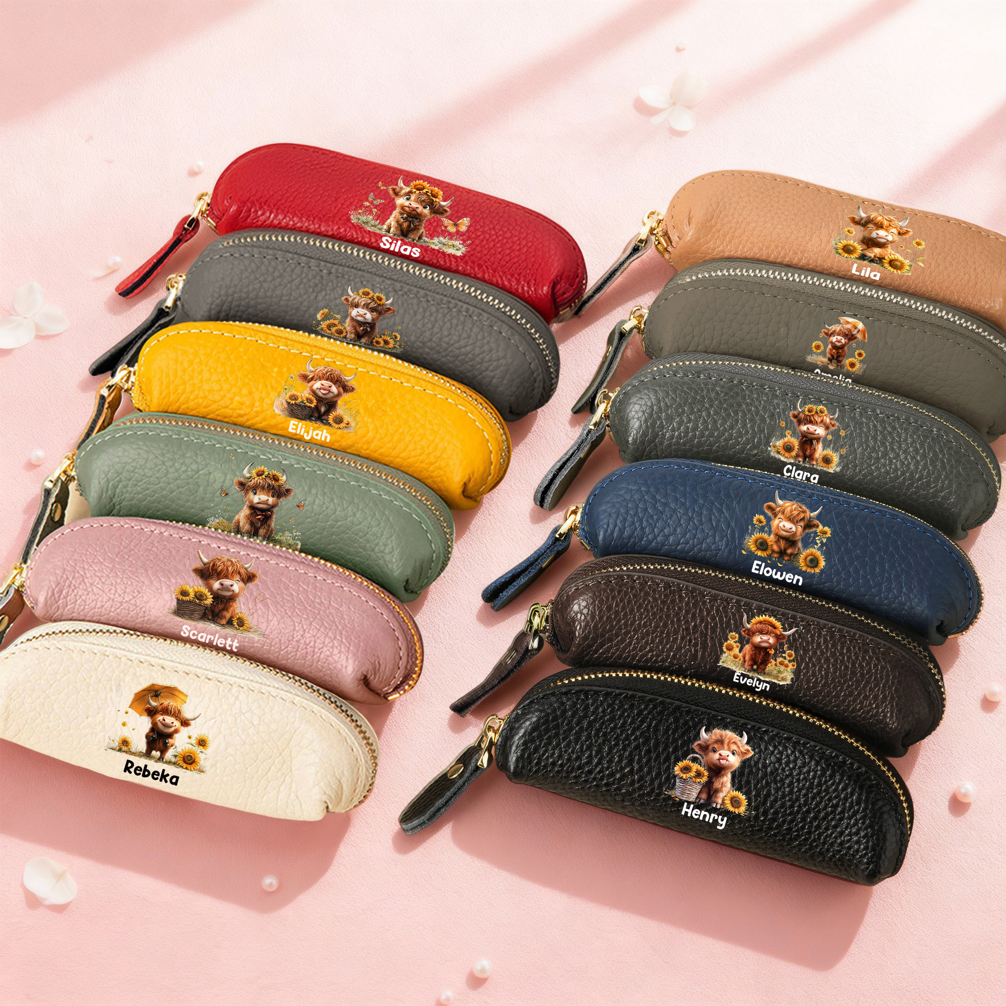 Personalisierte Sonnenblume Hochland Kuh Mini PU Leder Münze Geldbörse mit Namen Reisen Wesentliche Geburtstag täglichen Gebrauch Weihnachten Geschenk für Frauen