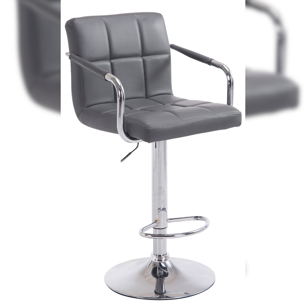 DELUKE Barhocker MINOR - Kunstleder Grau 54x46x91 cm Silber | Barstuhl Höhenverstellbar Mit Lehne Drehbar Tresenhocker Tresenstuhl Kneipenhocker Kneipenstuhl