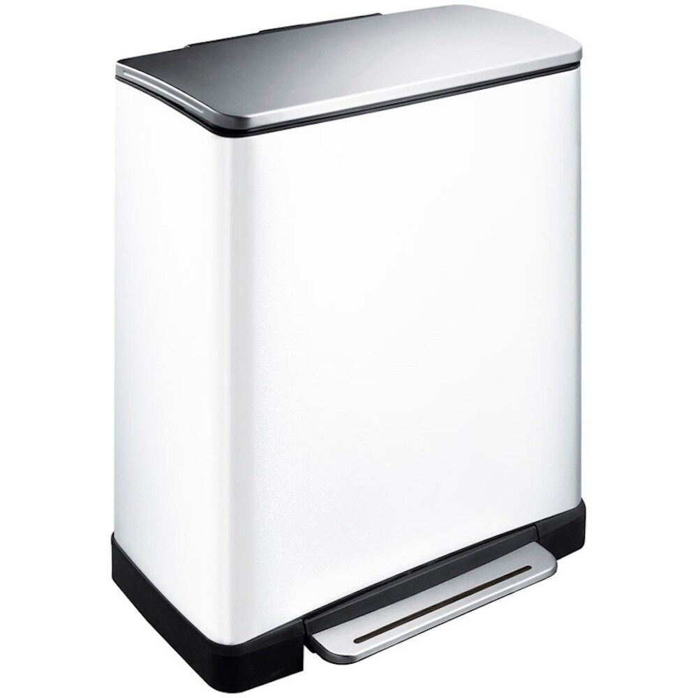 PROREGAL Stilvoller rechteckiger Treteimer mit extra breitem Pedal | 28+18 Liter, HxBxT 65x50x34,5cm | 2 Inneneimer aus Kunststoff | Weiß/Edelstahl
