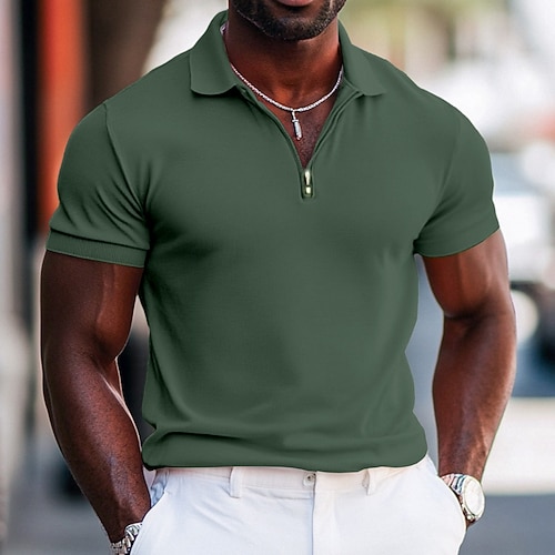 Per uomo Polo Polo con zip All'aperto Sportivo Bavero Zip a un quarto Manica Corta Moda Moderno Semplice Cerniera Tasca Frontale Estate Vestibilità regolare Nero Verde Blu scuro Grigio Polo