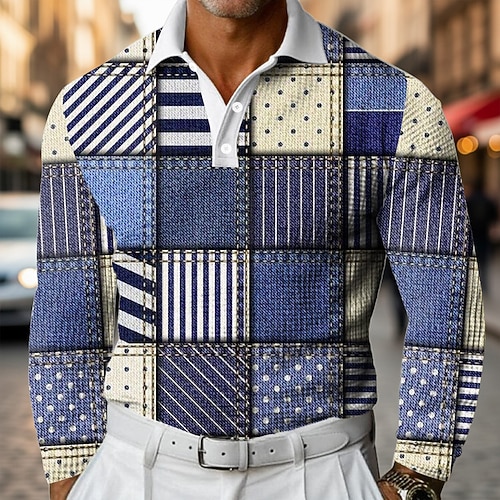Per uomo A quadri Strisce orizzontali Polo Polo da rugby Testurizzato Manica Lunga Magliette polo Bavero Abbigliamento Sportivo Casual Scuola Athleisure Abbigliamento quotidiano Stampa 3D Primavera