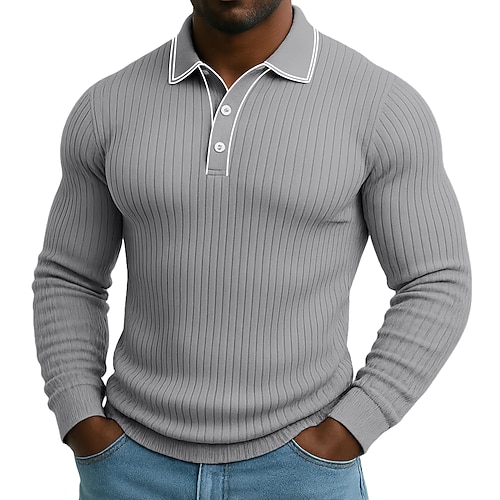 Per uomo Polo Top a Maglia a Coste Vacanza Streetwear Bavero Manica Lunga Essenziale Moderno Semplice Bottoni Primavera Autunno Tutte le stagioni Vestibilità aderente Blu Nero Grigio Blu marino Polo